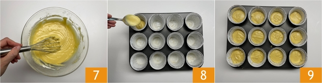 Mix well until you obtain a thick, lump-free batter 7. At this point, butter and flour 12 aluminum muffin molds, arrange them on a baking sheet, and distribute the batter inside using a spoon 8. Bake in a preheated static oven at 355°F for 40 minutes 9.