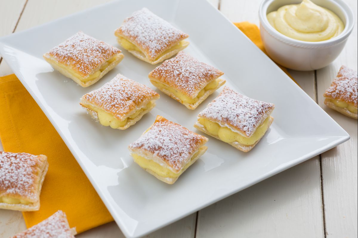 There's something sweet and inviting about biting into a hot Puglian dessert—pretty simple—where the puff pastry with custard is still a little gooey and the sugar on top melts into the cracks. A real Puglian grandma might sneak in some jam or slices of strawberries, but the classic way is always with thick, rich crema pasticcera inside.