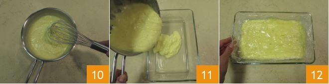 and cook until thickened: it will take about 4-5 minutes 10. At this point, transfer the cream to a low, wide baking dish 11, let it cool slightly, then cover with cling film in contact 12 and place in the refrigerator.