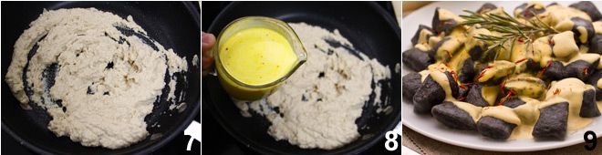 To prepare the squid ink gnocchetti with sea bass and saffron sauce, start by preparing the squid ink gnocchi, Squid Ink Gnocchi to see the procedure.