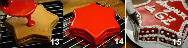 At this point, prepare the glaze for coating the cake. Put the powdered sugar in a bowl and add enough hot water to make the mixture smooth but thick 10. Add red food coloring, which can be in powder or liquid form (if it's powder, dissolve it in a small amount of hot water) 11 and mix well to achieve a uniform color 12.
