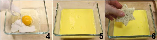 Take a bowl and beat the egg with the milk (4-5). Then dip the stars in the egg and milk mixture 6.