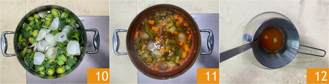Cook over medium heat for about 40 minutes 10. After this time 11, strain the broth 12.