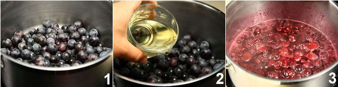 To prepare the strawberry grape and cinnamon jam, start by sanitizing the jars and lids as indicated in the guidelines of the Ministry of Health at the end of the recipe. Once you have completed this operation, wash the grapes and detach the berries from the stem 1, put them in a large pot and add the white wine 2. Cook on high heat for about fifteen minutes until the berries have partially mashed 3.