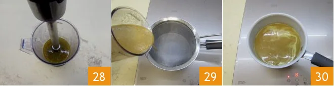 and blend everything to obtain a delicious accompanying sauce 28 which you will filter and heat for a few minutes in a small saucepan (29-30).