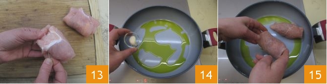 and secure everything with a toothpick 13. Proceed the same way with all the rolls until you finish the ingredients. In a large pan, brown a whole clove of garlic with oil 14, then add the rolls 15