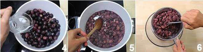 Add the water 4 and let the grapes wilt, covered and stirring occasionally, for about 15 minutes, until they become soft and start releasing juice 5. Pass the cooked grapes through a food mill and set the juice aside 6.