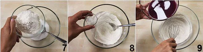 At this point, mix the sugar and flour in a bowl 7 and add the seeds from the vanilla pod (or vanilla extract) 8. Gradually add the previously obtained grape juice to the dry ingredients 9,