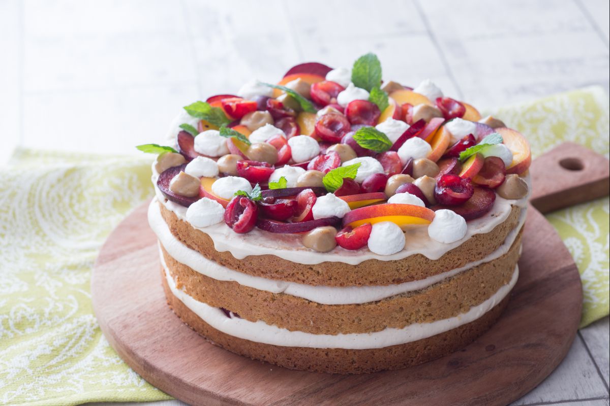 When those sunny days roll in, this summer cake is just the thing. Really good stuff. A light, yet sweet treat. Italian home bakers are all about layering whole wheat sponge cake with this creamy mix of soy milk and cream, sweetened with muscovado sugar. So, so delicious. It's a fantastic example of healthy cake recipes, perfect for anyone avoiding dairy or processed ingredients. The moist sponge? It pairs wonderfully with summer fruits like juicy peaches, cherries and plums.
