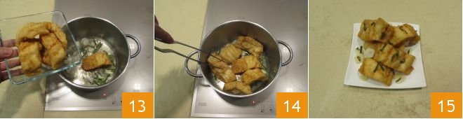 As soon as the syrup is boiling, add the fried cod pieces 13 and cook for another 5 minutes, turning them occasionally to flavor them well 14. When ready, plate your sweet and sour Ligurian cod pieces and serve hot 15!