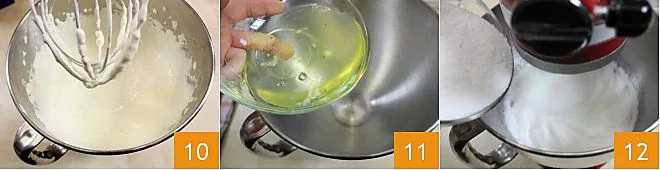 Mix everything with the beaters of an electric mixer or stand mixer until you obtain a smooth and creamy mixture 10. Separately, beat the egg whites with sugar (11-12):