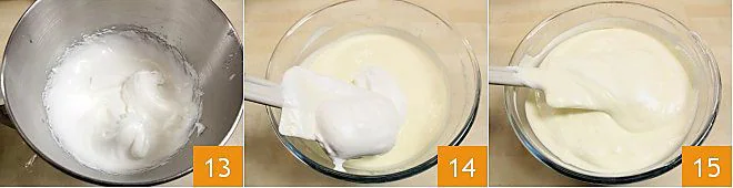 the egg whites should be glossy, not stiff peaks, but still soft and creamy 13. Gently incorporate them into the fromage blanc mixture 14, mixing from bottom to top 15.