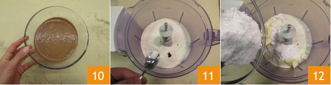 Then pour it into a bowl 10, cover with plastic wrap and let it crystallize in the refrigerator for 12 hours. In the meantime, also prepare the shortcrust. In the bowl of a mixer, pour the all-purpose flour, the vanilla seeds set aside earlier, and the salt 11. Add the cold butter in cubes and the powdered sugar 12