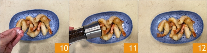 Season with salt 10 and pepper to taste 11 and serve your tempura shrimp immediately 12!