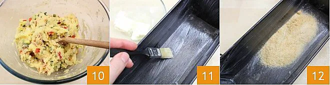 then mix everything very well 10. Butter a loaf pan measuring 10.5x4 inches 11 and line it with breadcrumbs 12;
