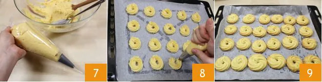 Transfer the dough into a pastry bag with a star nozzle 7. Grease the sides and center of a baking sheet and line it with parchment paper; squeeze the dough directly onto it from the pastry bag, forming small round rings 8. Bake in a static oven at 356°F for 15/20 minutes, until the cookies are golden brown 9. Your paste di meliga are ready.