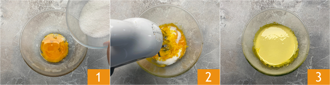 To prepare the tiramisù with whipped cream, first make the coffee and let it cool completely. In a bowl, pour in the egg yolks (preferably pasteurized), then add the sugar 1 and beat with an electric mixer for about ten minutes 2, until you obtain a light and frothy mixture 3.