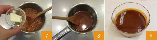 Finally, add the piece of butter 7 and continue stirring to mix it into the mixture 8. Your toffee sauce is ready 9.
