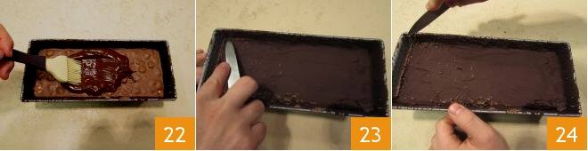 Place in the refrigerator, in the coldest part, to solidify for at least 30 minutes or until the chocolate is firm 7. After the necessary time, melt another 100 g of dark chocolate in a bain-marie 8: then pour it into the mold 9.