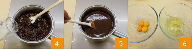 Stir with a wooden spoon and, when melted, pour in the milk 4. Stir again until you get a thick, lump-free sauce 5. While the chocolate cools, separate the yolks from the whites 6