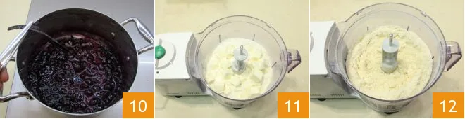 When it reaches this temperature, the compote will be ready, so remove the vanilla bean and set aside to cool 10. Meanwhile, prepare the shortcrust pastry. Start with the sanding: in a blender, place the sifted flour 11, a pinch of salt, and the butter just taken out of the fridge, coarsely chopped. Blend everything until you get a sandy and floury mixture 12;