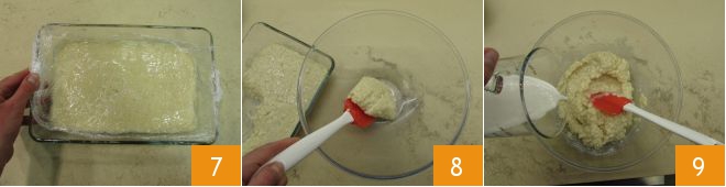 and cover with plastic wrap on contact 7. Let it cool first at room temperature, then in the refrigerator for 12 hours or overnight. After this time, transfer the rice mixture to a bowl, add the cream 9