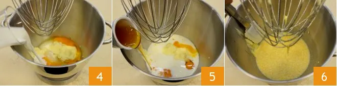 Also add the fresh milk 4, honey 5, and at this point, turn on the mixer until you obtain a fairly homogeneous mixture 6.