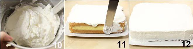 Prepare the chantilly cream by whipping the cream with the powdered sugar (Chantilly cream to see how to do it) 10. Using a smooth-bladed knife, spread the chantilly cream over the entire surface of the cake, including the edges 11, making sure to spread it evenly on the top 12.