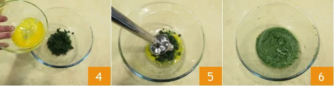 Once cold, transfer them to a bowl and lightly mash them with a fork, then add the egg 4. Blend everything with an immersion blender 5 until you obtain a puree, which you will use to flavor the shortcrust pastry 6.