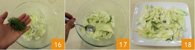 Flavor with dill broken by hand 16. Mix and distribute on a serving plate 18.