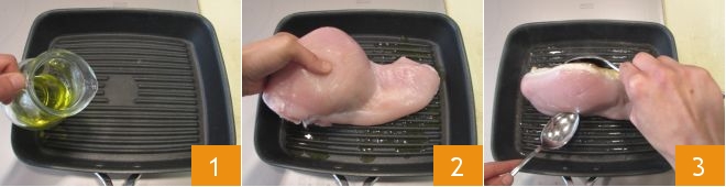 To prepare the turkey slices with fennel and pomegranate, start with the meat. On a hot grill, pour a drizzle of oil 1. Place the turkey on it 2 and cook it over medium heat on the first side for about 25 minutes. After the first 25 minutes, turn it 3