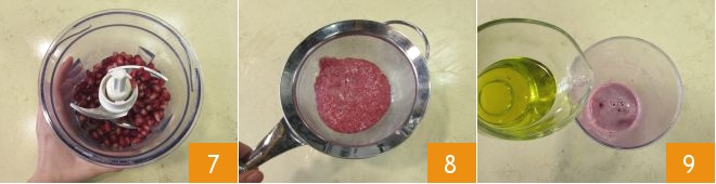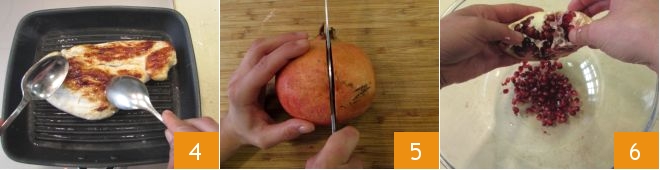 and cook it for another 25 minutes on the other side 3. Meanwhile, prepare the dressing: take the pomegranate, cut it in half 5, and deseed it by collecting the seeds in a bowl 6; set some aside for the final decoration.