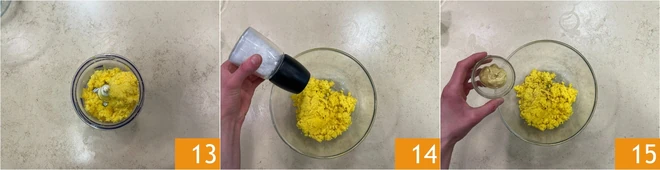 Blend the mixture until you get a cream 13. Transfer it to a bowl, add salt 14 and pepper to taste; also add mustard 15.