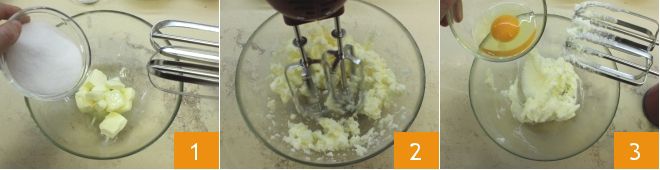To make the vanilla muffins with sour cherry heart: in a bowl, place the softened butter and beat it with an electric beater (or a stand mixer) together with the sugar (1-2), add the room temperature egg 2, continuing to beat,