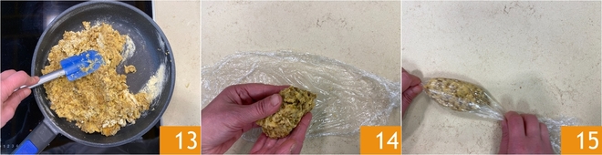 Mix the ingredients well, stirring well and cooking over low heat for the last 4 minutes 13. Once the sausage mixture has cooled, take 100 grams, shape it into a sausage, and place it on a piece of plastic wrap 14. Roll the sausage to better shape it and seal the two ends. Using the plastic wrap, create the shape of a sausage 15 and let them chill in the fridge for 1 hour.