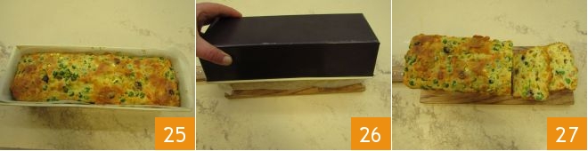 Mix everything 22, line a 12x4.5 inch plumcake mold with parchment paper. Pour the mixture into it 23, level it with a spatula 34, and bake your vegetable plumcake in a preheated static oven at 356°F for 60 minutes.