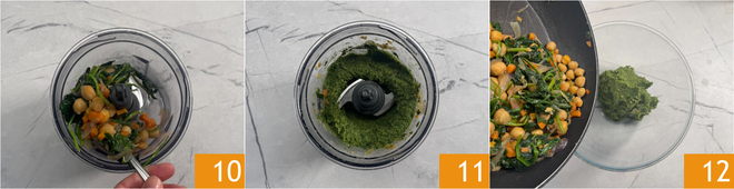 Take half of the vegetables, transfer them to a blender 10, and blend until smooth 11. Then place it in a bowl and add the remaining vegetables 12.