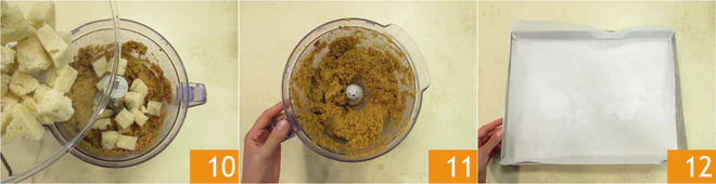 Add the bread crumbs in pieces to the mixture 10 and blend everything until you get a soft but malleable mixture 11. Line a baking sheet with parchment paper 12.
