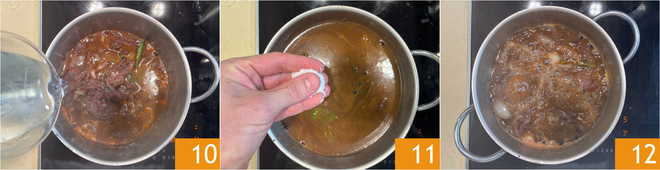 Cover with water 10, salt 11, and pepper. Let it simmer over low heat for about 30 minutes 12.