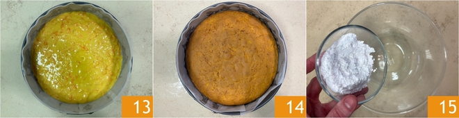 Bake in a preheated static oven at 350°F for about 35-40 minutes 13. Check the baking with a toothpick, if it comes out clean, remove the cake from the oven and let it cool completely in the pan 14. Meanwhile, prepare the frosting: pour the powdered sugar into a bowl 15.