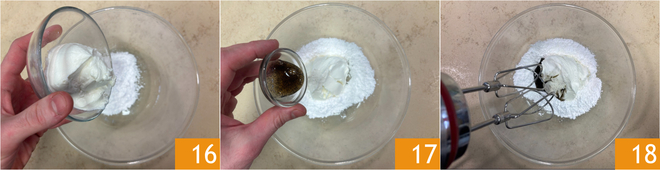 Add the Greek yogurt 16 and vanilla extract 17, then mix with the electric mixer 18.