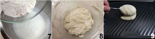 Mix the dry ingredients and gradually add them to the semi-whipped cream 7, blending everything with a spatula: the batter should be thick 8. Heat the sandwich griddle and once it is very hot, pour one to two tablespoons of batter 9