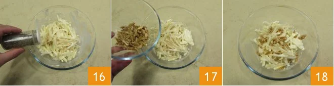 Mix well and adjust with salt and pepper 16; finally, add the chopped walnuts 17, mix again, and serve your Waldorf salad 18.