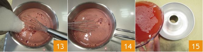 Add also the sugar and mix the ingredients to combine them 14. It will take about 5-6 minutes for the ingredients to dissolve. Then pour the mixture into a 3 lb ring-shaped mold 15.