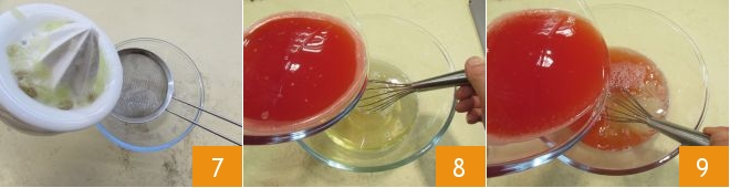 Place the watermelon chunks in a juicer to separate the pulp from the juice of the fruit 4: you will obtain 2.9 lbs of watermelon juice 5: set it aside. Now squeeze the lemon 6.