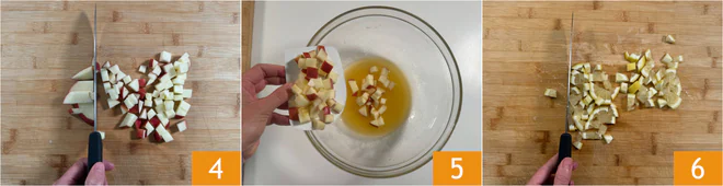 Cut the apple into cubes about 1/2 inch 4 and put them in the bowl 5. Also cut the lemon, without peeling it 6.