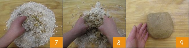 Start kneading quickly with your hands (7-8) just long enough to obtain a uniform dough 9, but without warming the dough too much.