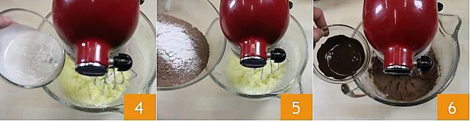 pour the yogurt while continuing to beat 4, when it has been absorbed into the mixture, also add the sifted Nesquik and flour and mix everything 5. Then add the dark chocolate that you have previously melted in the microwave and beat again to combine everything 6