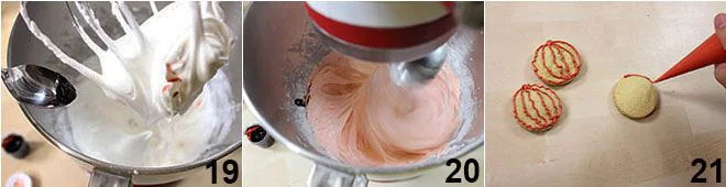 While the cookies are baking, prepare the glaze: beat the egg white and when it is semi-whipped, add the powdered sugar one tablespoon at a time and a few drops of lemon. Lastly, add the food coloring 19 until you achieve the desired color 20. Continue whipping until you obtain a firm and shiny glaze, transfer it into a piping bag, and decorate your witch's pumpkin cookies. You can make lines to resemble a small round pumpkin 21 or, as in the presentation photo, make scary faces typical of Halloween! And here are your witch's pumpkin cookies ready!
