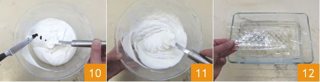 Add the vanilla seeds to the creamy mixture 10 and mix again until smooth 11. At this point, soak the gelatin in cold water for about 10 minutes 12.